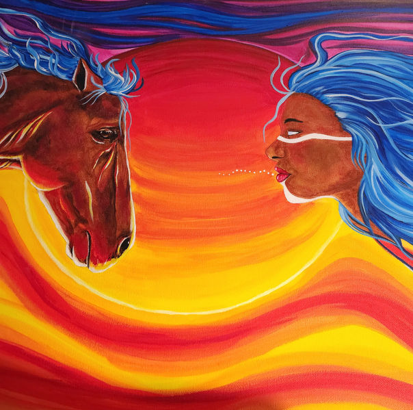 “As an Artist I am passionate about my work. I have learned the importance of paying attention to the story that each image reveals. I am a Survivor, Mother, Sister, Aunty, Grandmother, Warrior & most importantly a Spirit Holder. I am a member of the Mosakahiken Nation, from Manitoba.” A 60s Scoop Survivor” as some people like to say, but I am human, Kindness is important to me… We all breathe and feel our surroundings. My paintings are a part of me & I want You to be a part of my Journey. When I was born, it was a hard era, people were scared, hurt & lots of secrets.